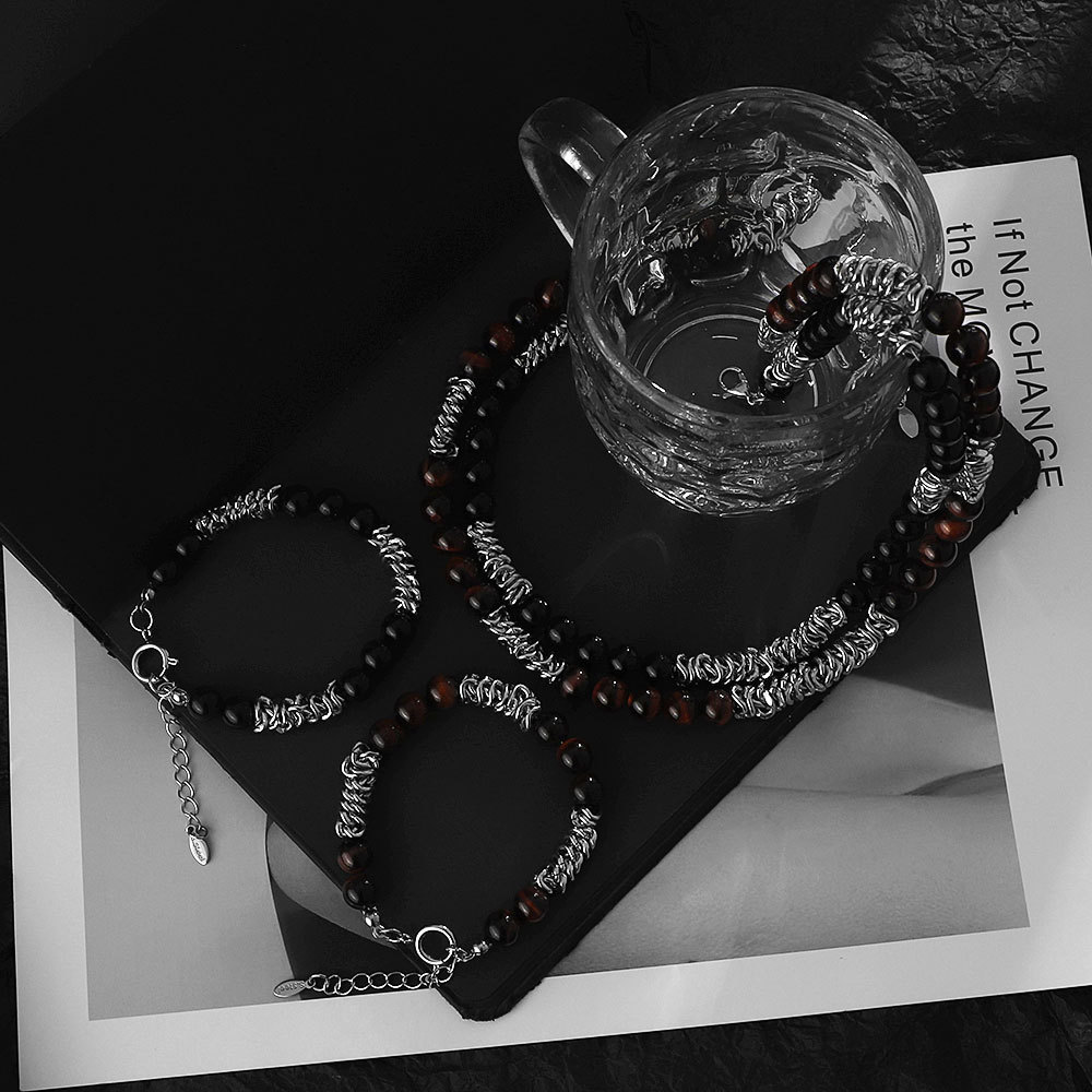 Titanium Steel Stitching Obsidian Necklace Niche Design Sense Men's Clavicle Chain Advanced Sense Trendy Brand All-match Neutral Accessories