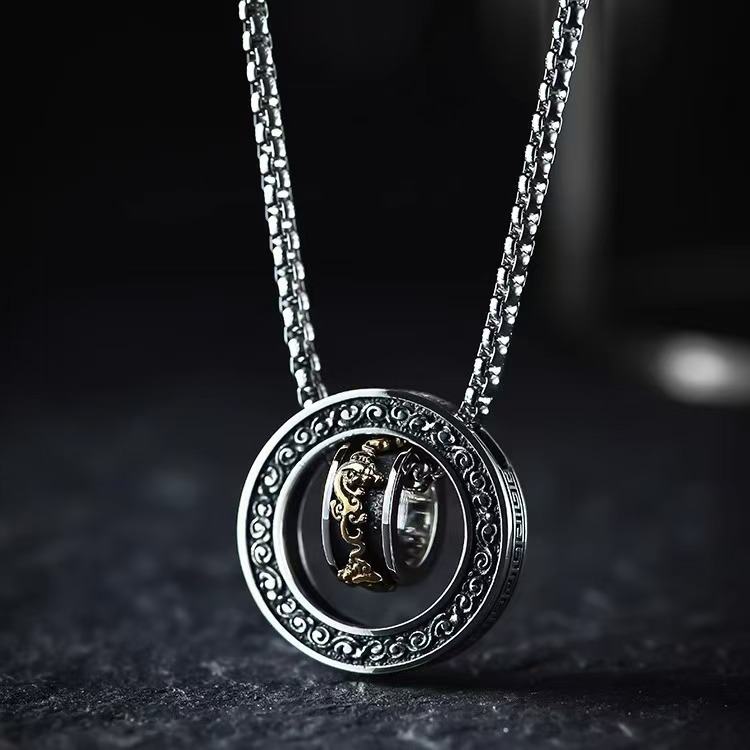 Thai Silver New Style Pixiu Transfer Bead Necklace Double Ring Men's Fashion Brand Retro Pendant Fashion Simple Personalized Accessories