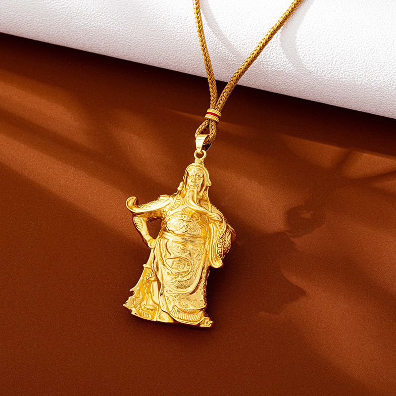 Chinese-Style Imitation Gold Guan Er Ye Necklace for Men and Women, Vietnamese Sand Gold Pendant with a High-End Feel That Doesn'T Fade Easily