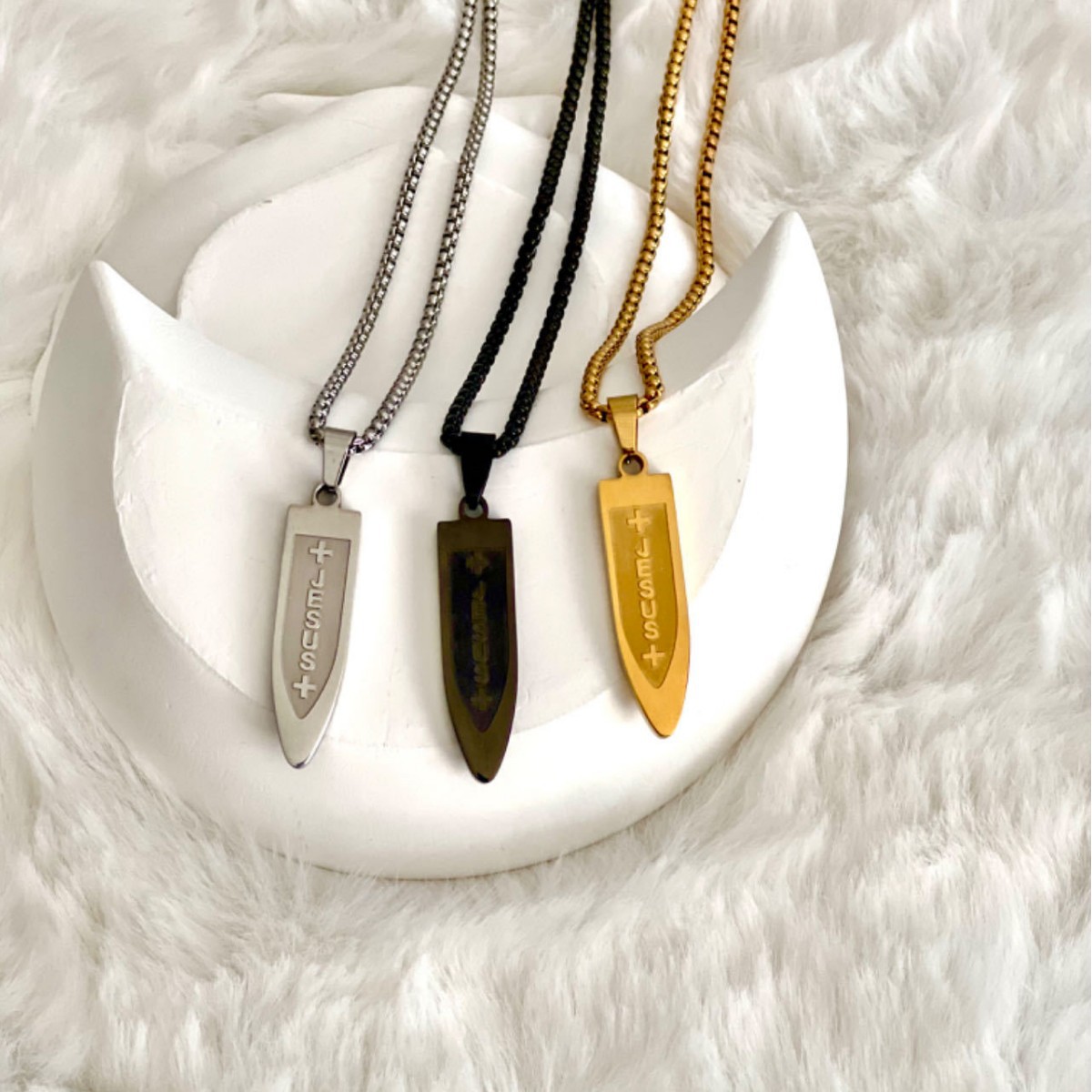 Cross-border Hot Selling Stainless Steel Cross Bullet Pendant JESUS Titanium Steel Necklace Men's Personality Jewelry Accessories
