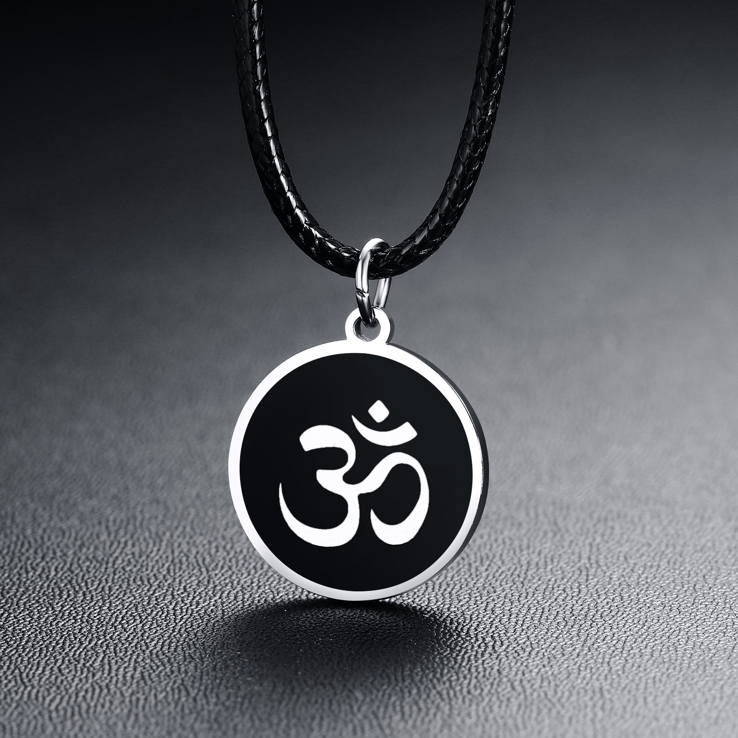European and American jewelry round Brand leather rope necklace stainless steel Om pendant steel color men's metal necklace PN-1287