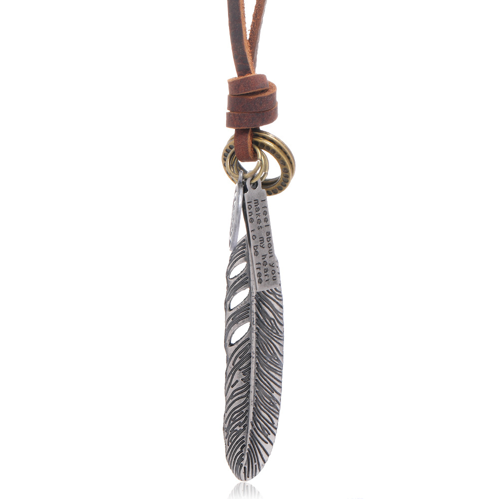 European and American new clothing accessories personalized simple cowhide necklace adjustable large feather pendant men's sweater chain