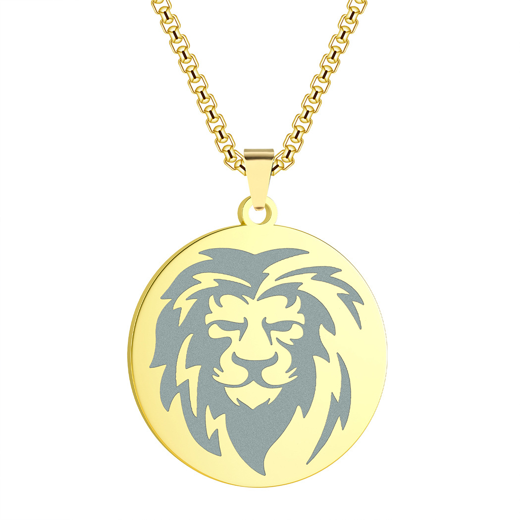 Stainless steel new fashion carved lion pendant personality simple European and American hot selling animal Men's necklace jewelry