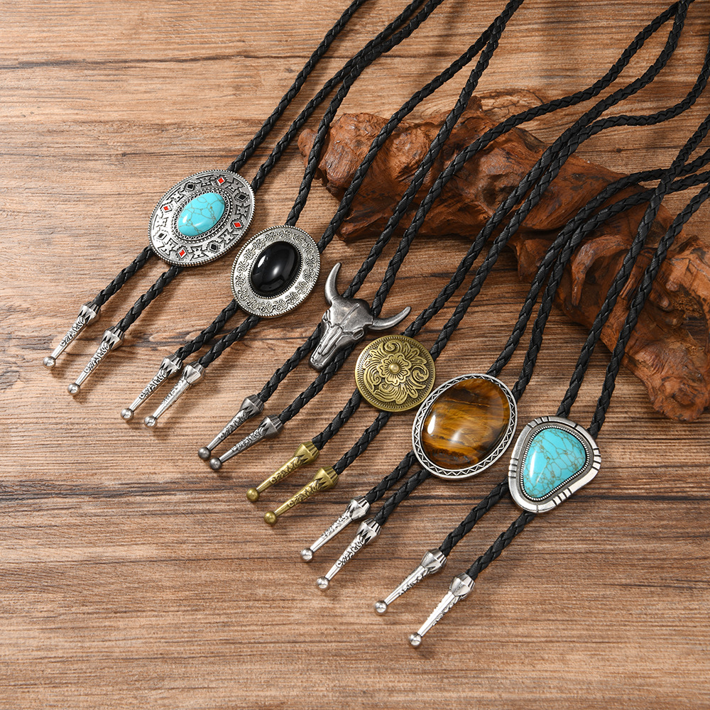 Vintage Style Round Alloy Men's Bow Tie Bull Head Creative Bolo Necklace Braided Accessories Male