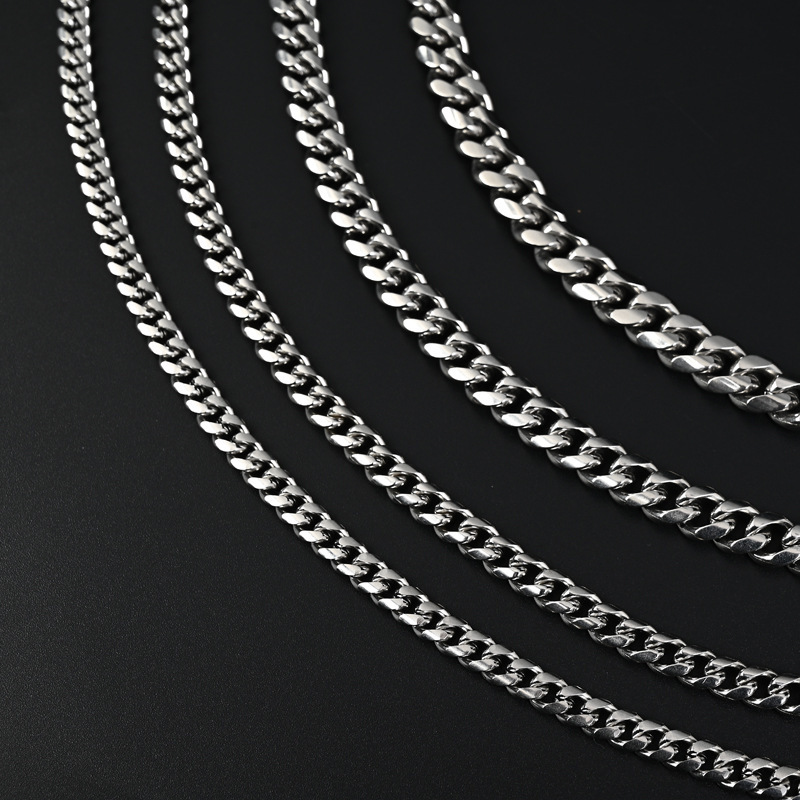 Titanium Steel New Fashion Hip-Hop Men's Necklace Bracelet Stainless Steel Cuban Round Grinding Chain Wide Chain Men's Jewelry
