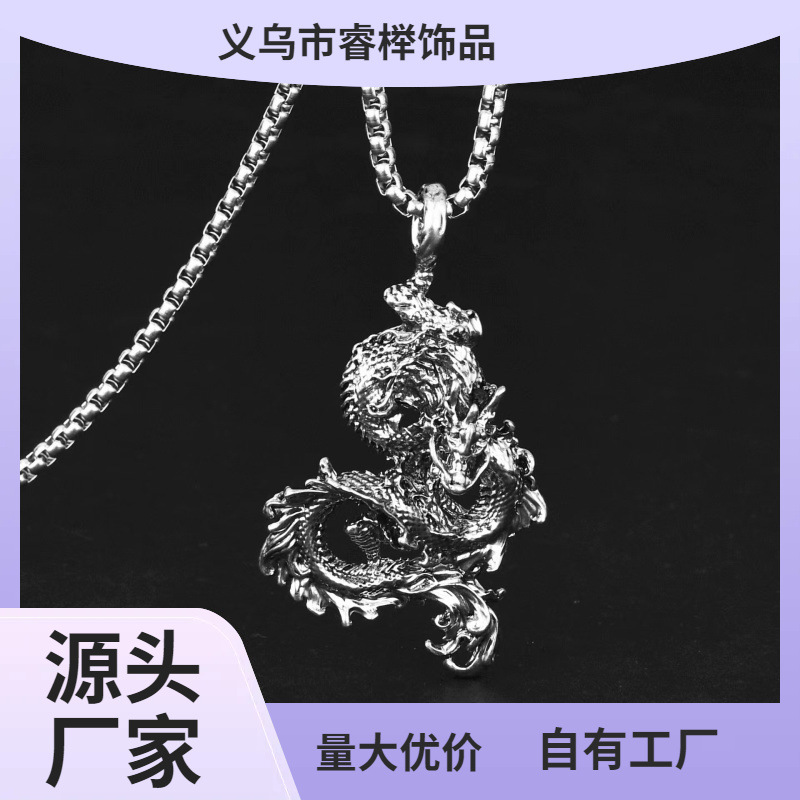 Cross-border Europe and the United States domineering national tide Chinese dragon titanium steel necklace retro hip-hop zodiac dragon pendant sweater chain men