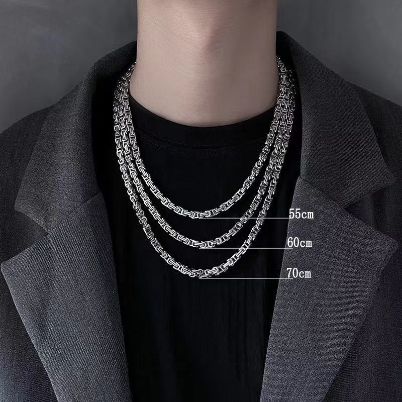 Cross-border Europe and the United States does not fade stainless steel necklace men's American rough titanium steel imperial chain fat man sweater chain square