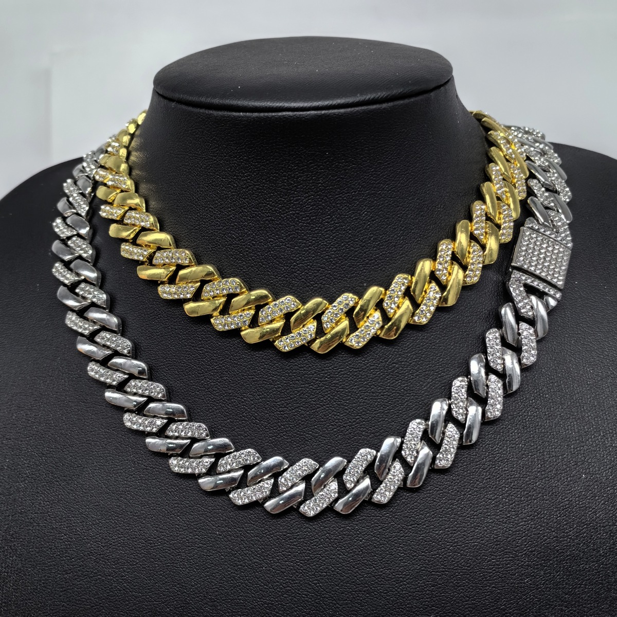 Cross-Border European and American 14mm Rhombus Spacer Flip Head Alloy Diamond Men's Necklace Men's Hip-Hop Style Cuban Chain