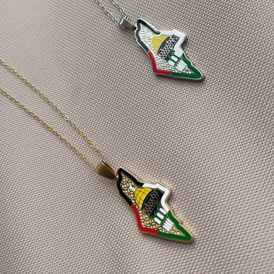 Cross-Border Hot-Selling Stainless Steel Scarf National Flag Map Epoxy Men's Necklace European and American Popular Middle Eastern Jewelry
