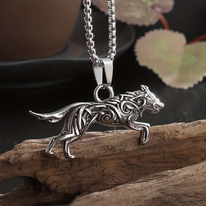 Cafe billion European and American cross-border men's retro Viking wolf pendant necklace Viking Celtic wolf hip-hop style necklace