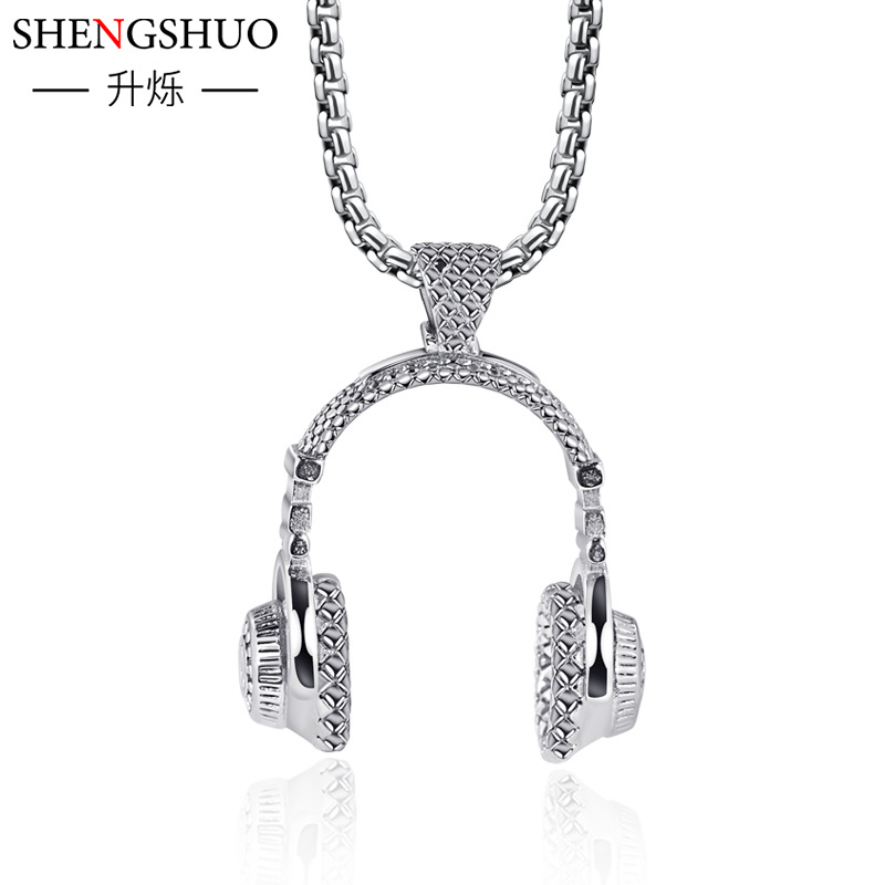 Headset titanium steel men's necklace stainless steel pendant does not fade European and American jewelry wholesale hip hop niche retro jewelry