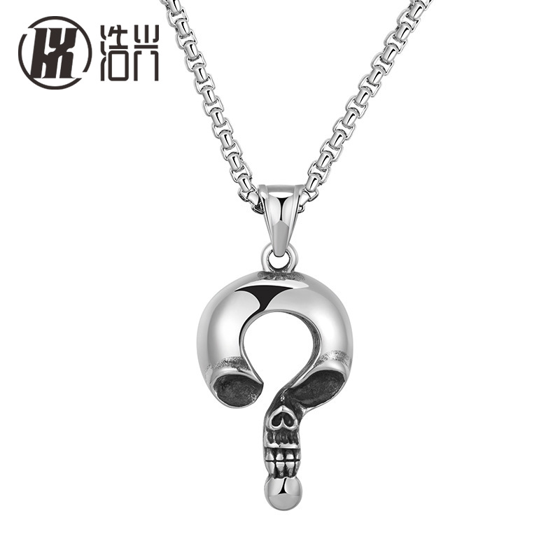 European and American hiphop hip hop jewelry skull question mark necklace titanium steel men's skull pendant necklace personalized jewelry