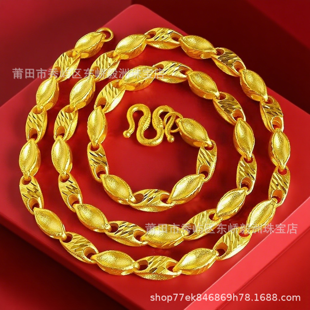 Vietnamese Sand Gold Necklace Imitation Gold Jewelry Hollow Necklace Domineering Men's Olive Chain Wheat Ear Necklace Street Stall Live Broadcast