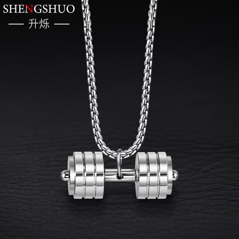 Fitness dumbbell titanium steel men's necklace stainless steel pendant does not fade European and American jewelry wholesale hip hop niche jewelry