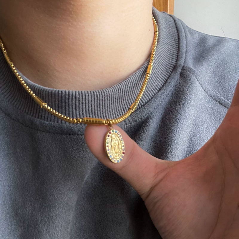 European and American ins style gold-plated musical note movement stainless steel pendant men's necklace couple style personalized pendant clavicle chain