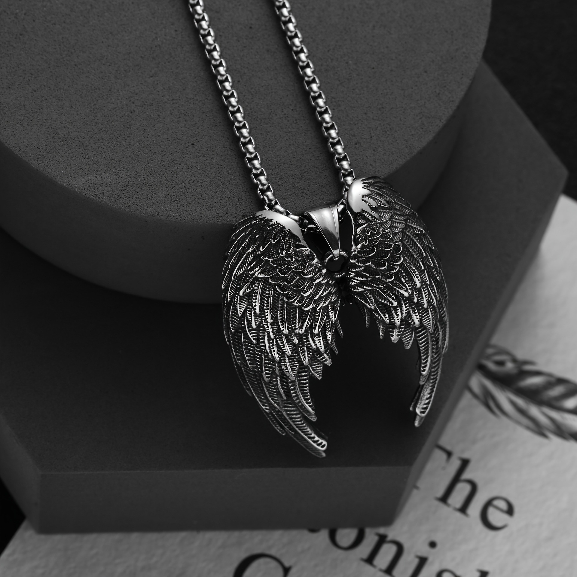Cross-Border Electroplating Retro Angel Wings Pendant European and American Men's Fashion Alloy Pendant Necklace Accessories Jewelry Wholesale