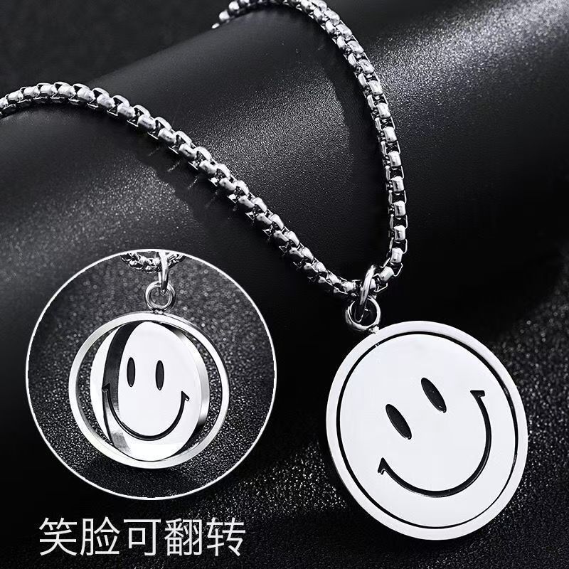 Popular Versatile Personality Men's Smiley Face Upset Face Accessory Rotatable Sweater Chain High-End Stylish Necklace