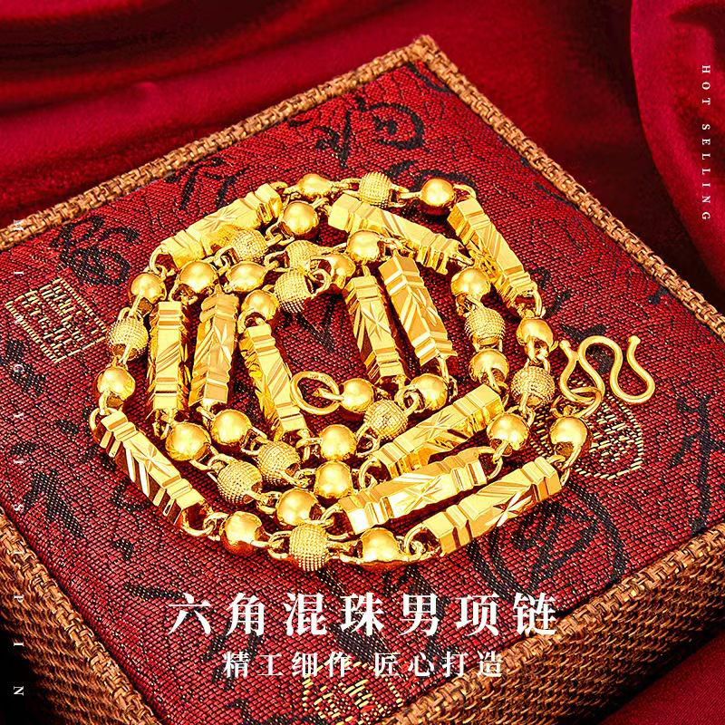 Vietnam gold necklace men's long-time non-fading yellow gold hexagonal bead necklace gold-plated artificial gold chain boss chain
