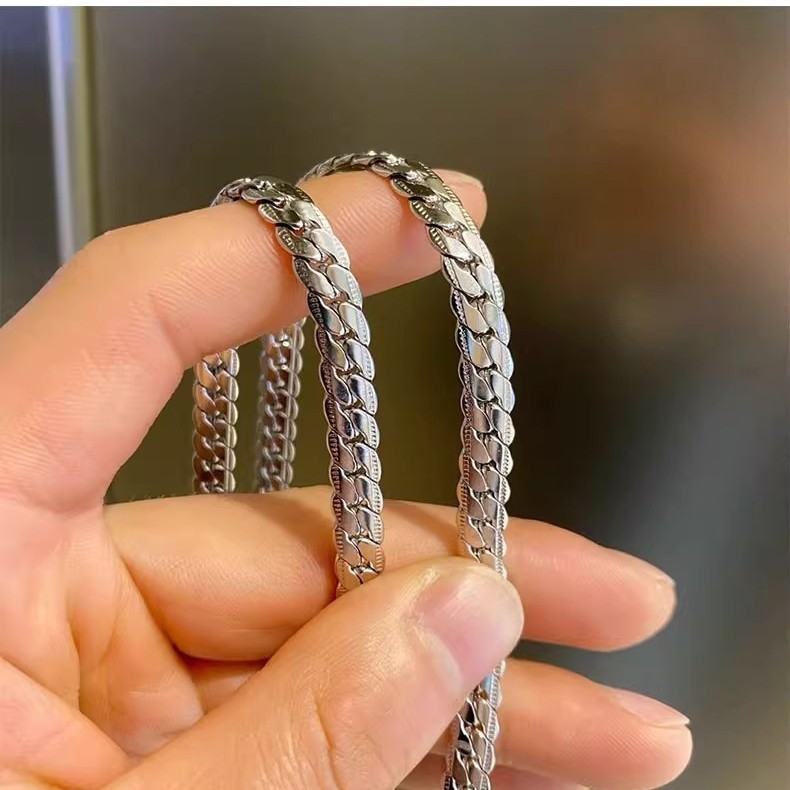 Factory Direct Sales Dongguan Titanium Steel Jewelry Embossed Cuban Necklace Boys Trendy Brand Fashion Accessories Necklace Plain Chain Wholesale