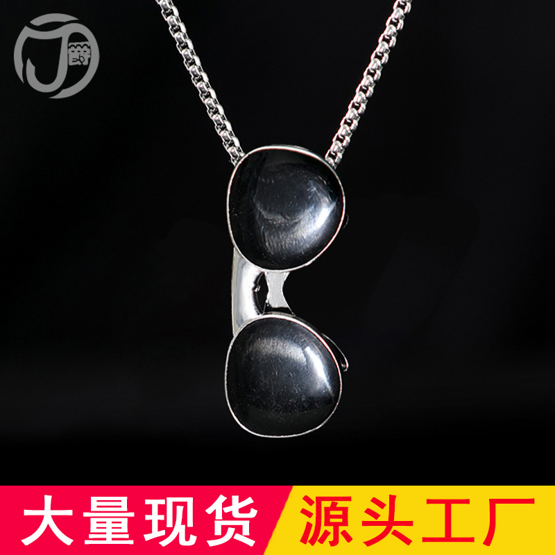Jinjue Jewelry Black Sunglasses Pendant Pendant ins Hip-Hop Men's Mid-Length Woolen Chain Necklace Accessories Trendy Brand