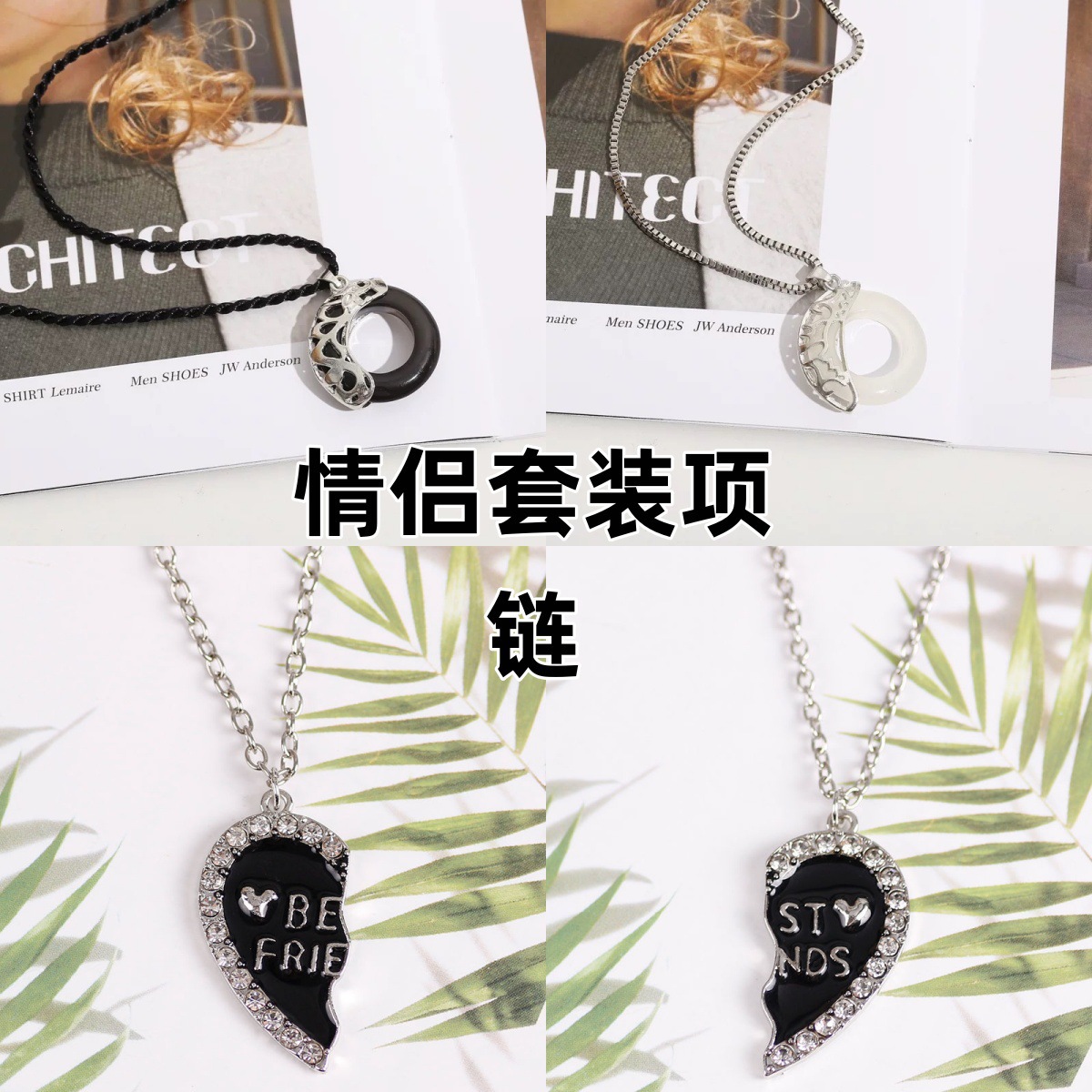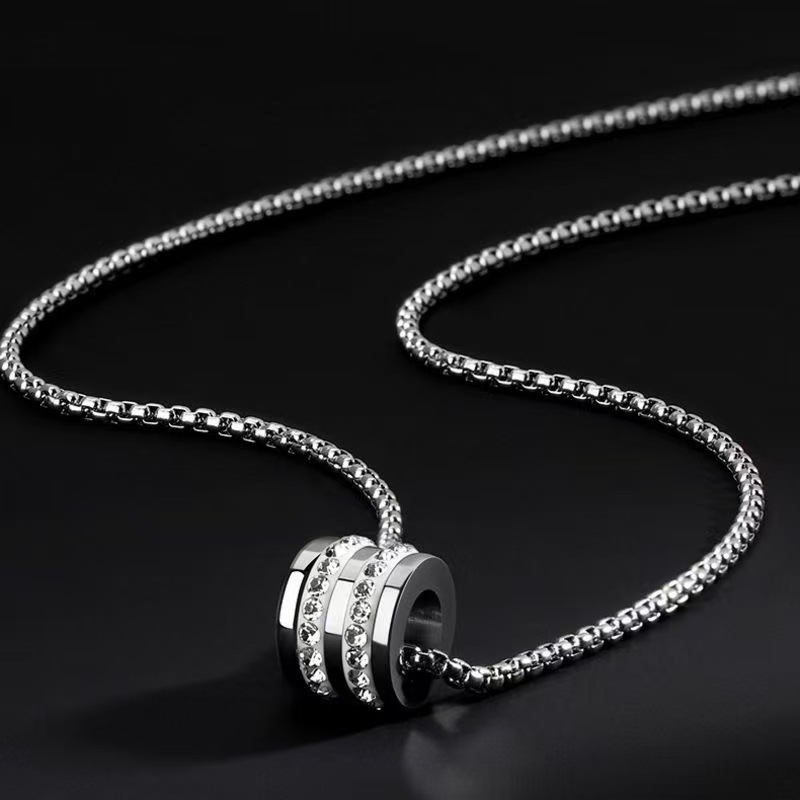 Wang Yibo same titanium steel double ring diamond-embedded fashion design fashion brand all-match accessories High Street pendant men's pendant