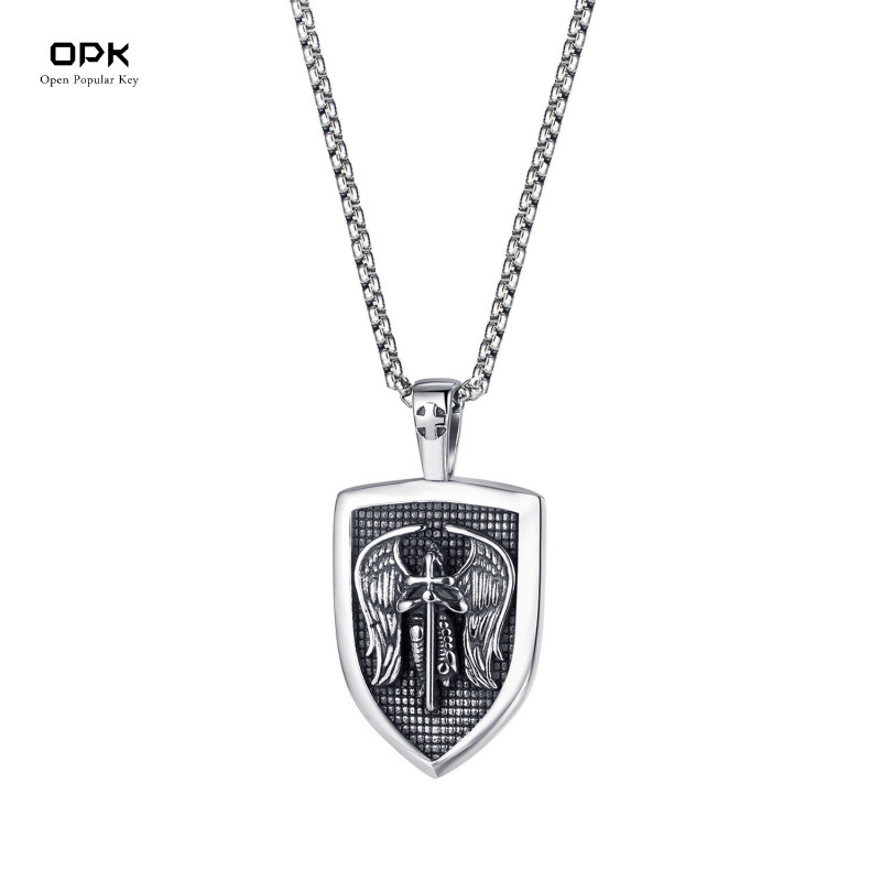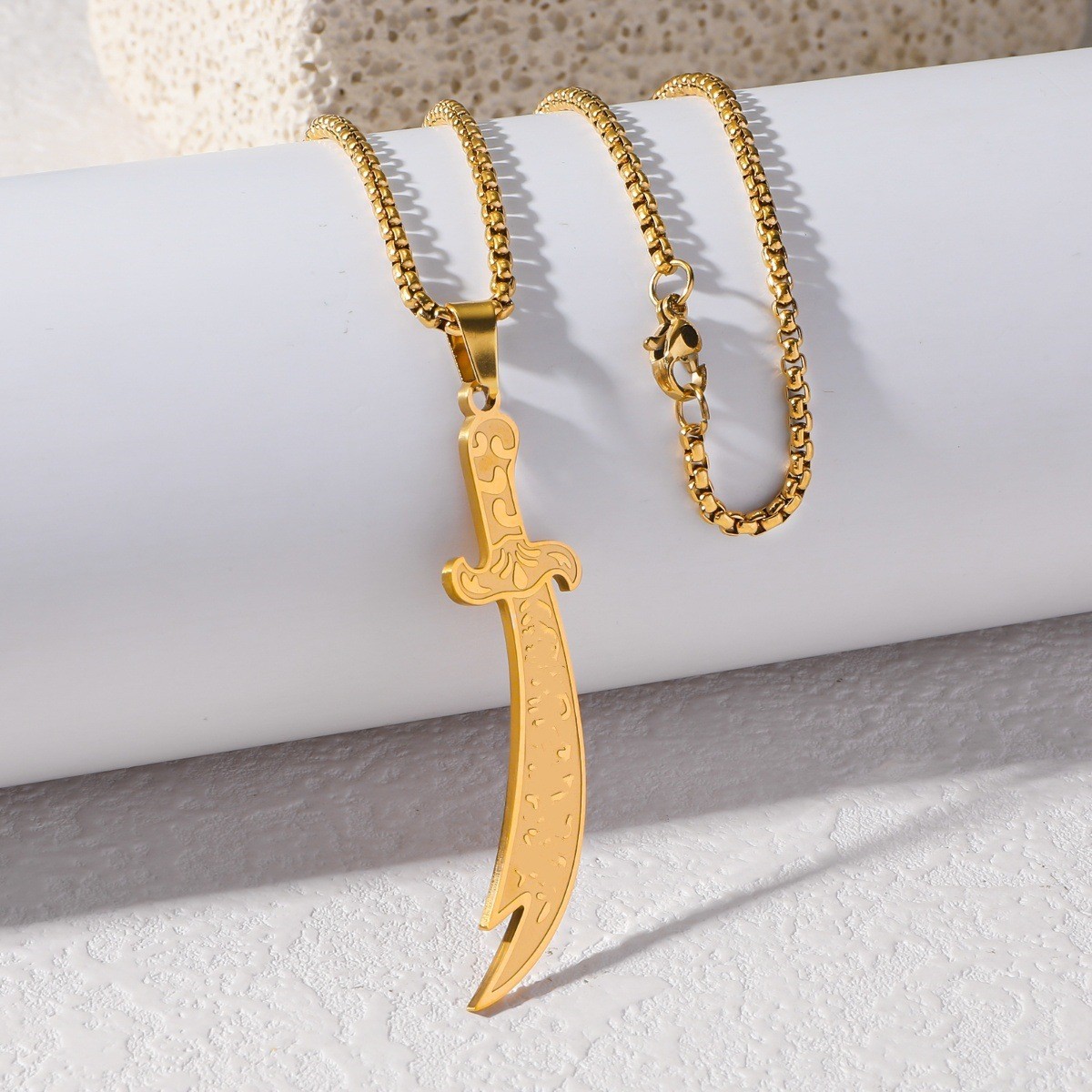 New Cross-Border Accessories Arabian Necklace Scimitar Engraved Pendant Men's Titanium Steel Non-Fading Yiwu Jewelry Wholesale