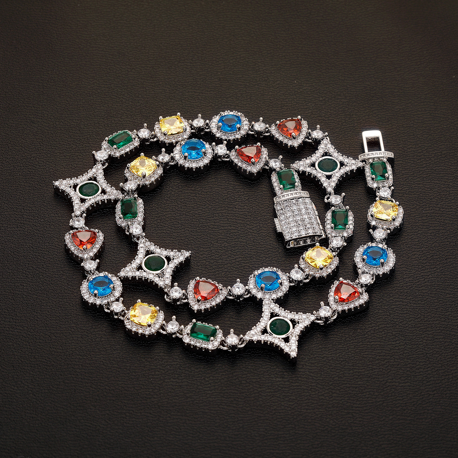 Alloy Cuban Chain Full Diamond 14mm Rhombus Men's Hip-Hop Style Necklace Cross-Border Wholesale Geometric Rhombus Necklace