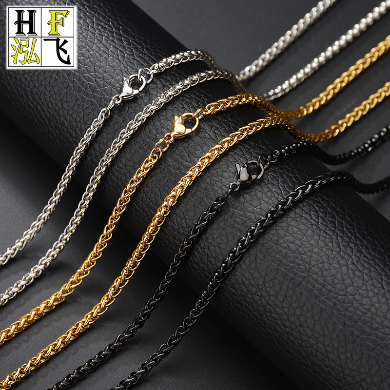 Twist Chain Stainless Steel Side Chain Personalized Fashion Titanium Steel Men's Necklace Denim Chain Sweater Chain Cross-Border Spot Wholesale
