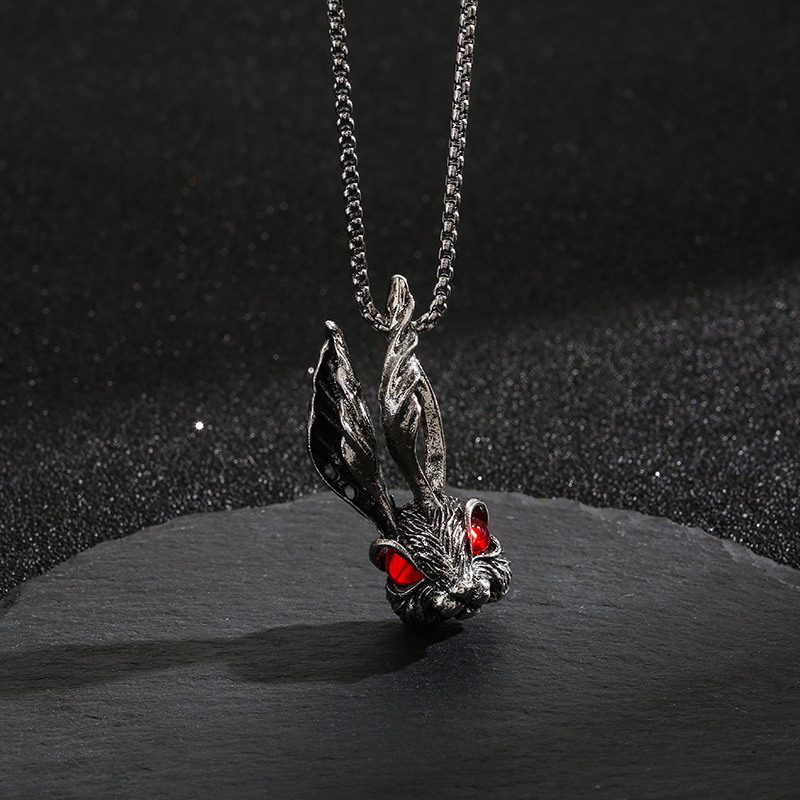 Amazon cross-border titanium steel in stock vintage red eye bunny men's pendant long ear pendant titanium steel necklace