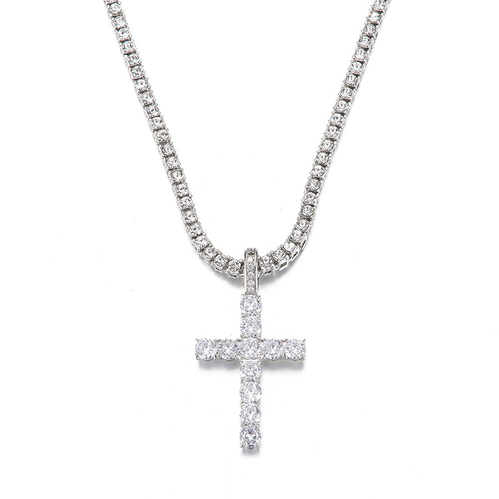 Amazon Cross-border Horse Thinking Same Style Zircon Cross Necklace Women's High-end Simple Light Luxury Pendant Jewelry for Men