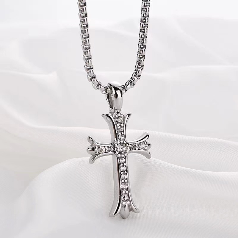 Cruciferous Titanium Steel Diamond Necklace European and American Style Hip Hop Men's Advanced Niche Design Sense Cross Women's Woolen Chain