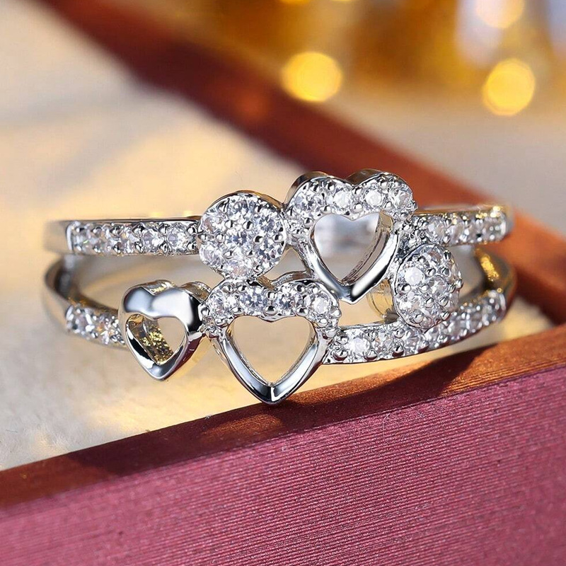 Cross-Border New Style Cool Style Diamond Hollow Love Ring Women's Personality Creative Simple Light Luxury Trendy Hand Jewelry Wholesale