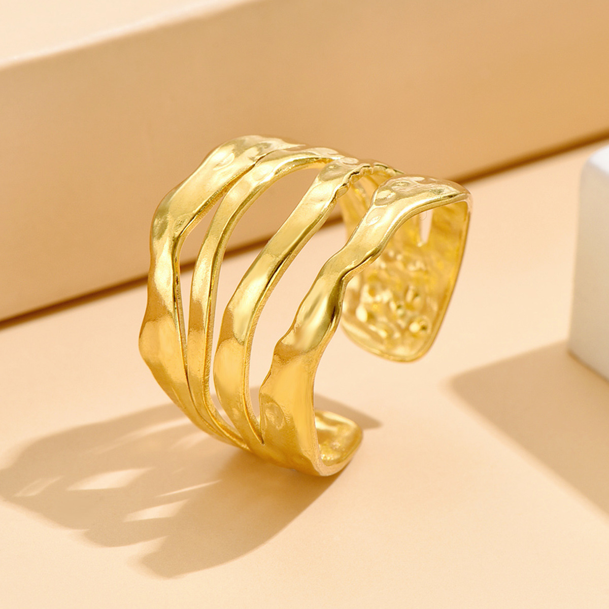 Cross-Border Stainless Steel Jewelry Retro Baroque Irregular Hammered Texture Open Ring Women's Personalized Titanium Steel Ring