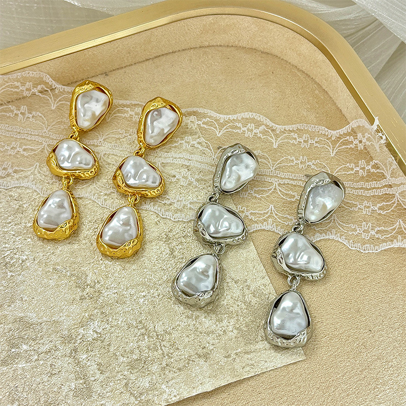 Lugong European and American Long Pearl Earrings Women's Niche Cold Wind Geometric Water Drop Earrings Advanced Light Luxury Earrings