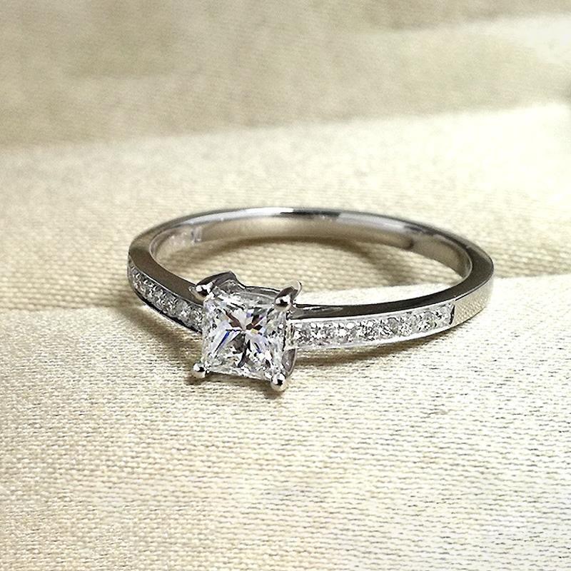 Princess Square Four-Claw Simulated Diamond Ring for Women Ebay Hot-Selling Hand Jewelry European and American Proposal Diamond Ring Personalized Engagement Ring