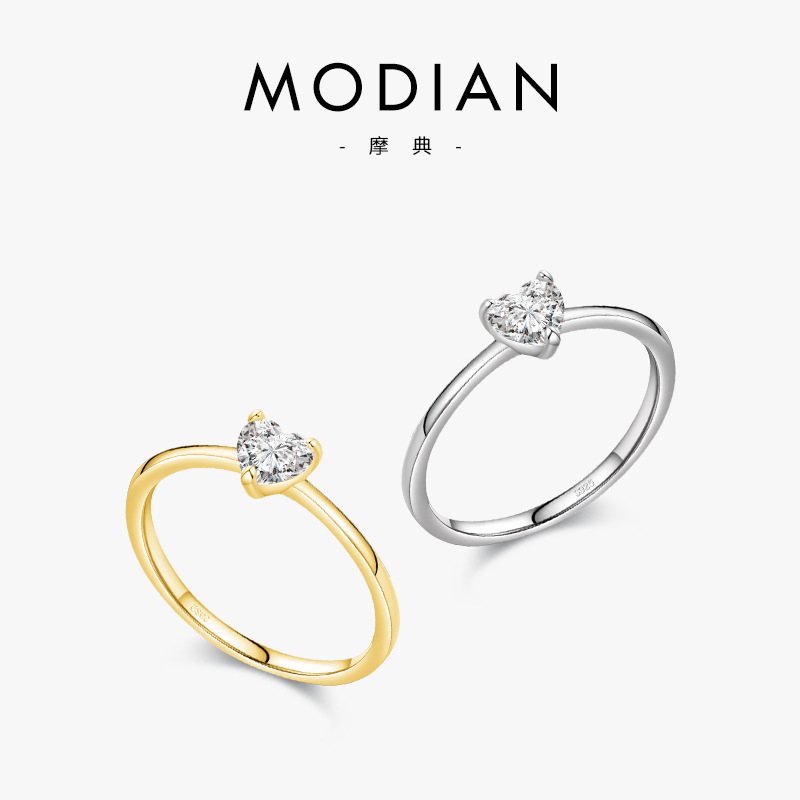Modian Japanese and Korean Fashionable New S925 Silver Ring Women's Seiko Heart Finger Ring Set with Diamonds Simple Jewelry