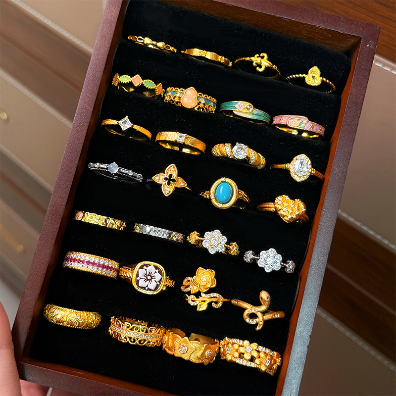 Wholesale imitation gold Vietnam sand gold ring open gold ring female gold plated female ring live delivery wholesale
