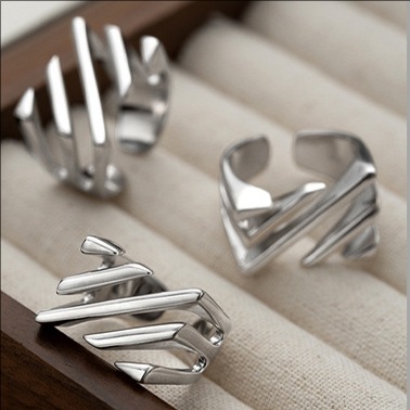 Seven Qi Korean version of the smooth square hollow multi-layer twill heavy ring cold simple wind blogger ring female explosions