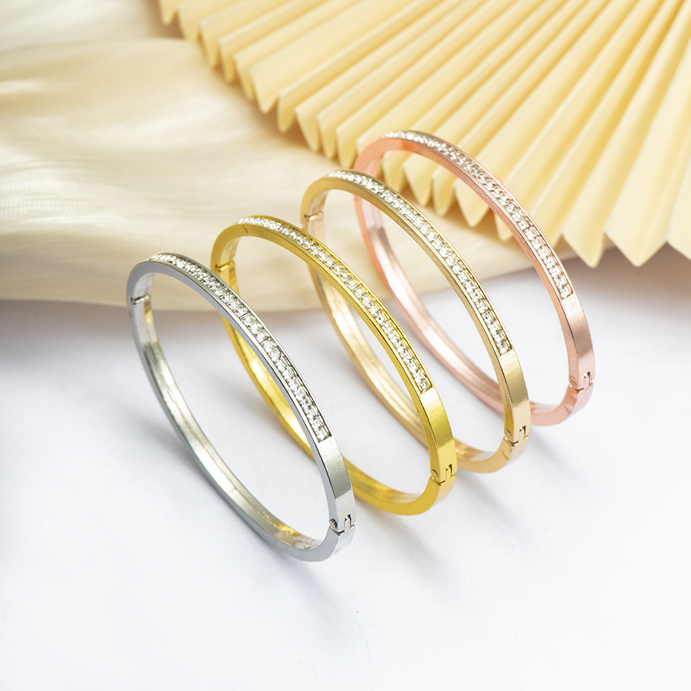 18K Rose Gold Narrow Edition Card Plus Bracelet Women's Explosions Not Falling Color Narrow Edition One Nail One Diamond Couple Titanium Steel Bracelet