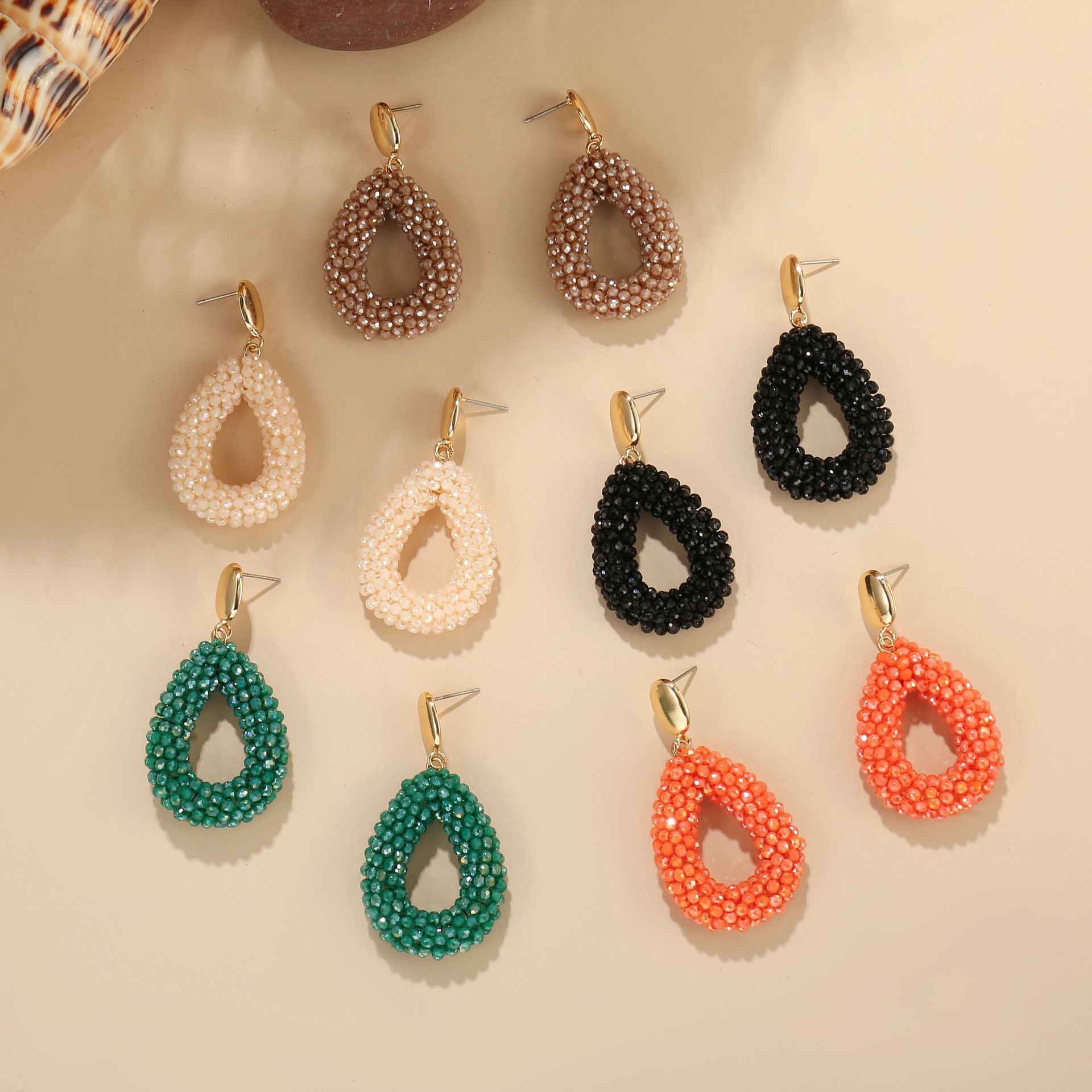 Ins Hand-Woven Crystal Fashion Women's Water Drop Pendant Earrings Creative Bohemian Hyun-Ah Style Ear Jewelry
