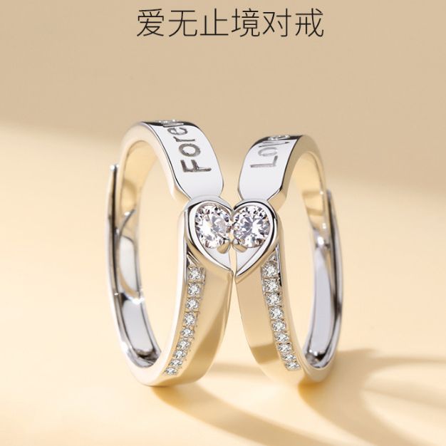 Pure white copper couple ring a pair of female men's ring fashion niche design fashion 520 Valentine's Day gift girlfriend