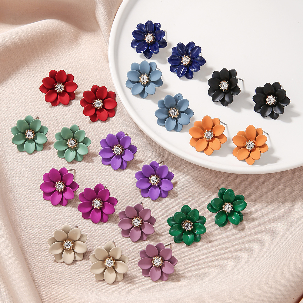 Hot Baroque scrub earrings female manufacturers direct fashion temperament candy color flower earrings personality Joker
