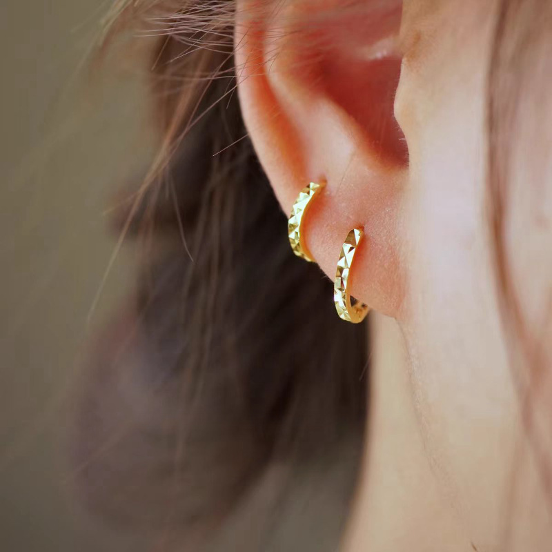 Japanese and Korean fashion men's and women's popular flat round stainless steel earrings women's small ears ear bone ear Buckle Titanium steel ear jewelry