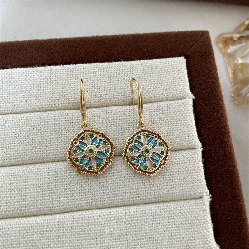 Lucky Disc Monet Garden Antique Earrings Women's Light Luxury High-end Ear Drop Ear Hook Explosive Niche Ear Accessories