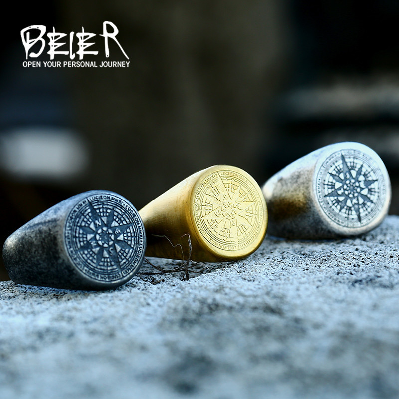 beier European and American hot sale stainless steel compass men's and women's ring cross-border new titanium steel compass jewelry wholesale