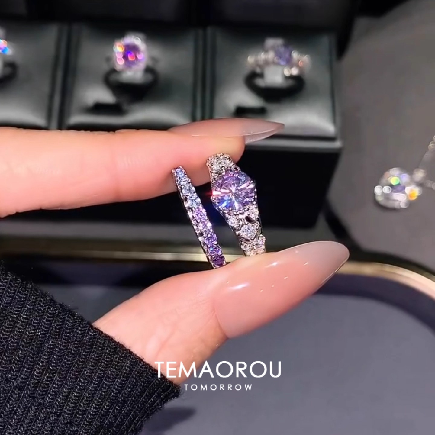 Vintage Old Money Style Violet Ring with Sparkling Diamonds for Women