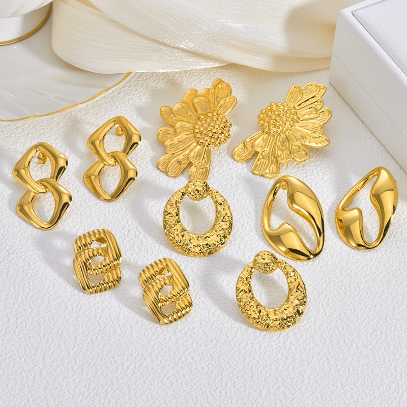 European and American Light Luxury Stainless Steel Earrings Niche Design Earrings for Women with a Unique Retro High-End Feel Gold Flower Studs