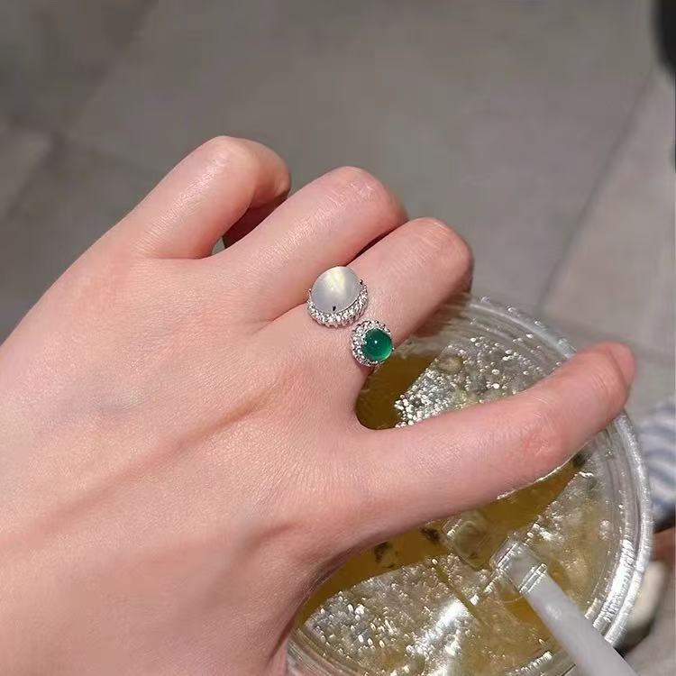 Two-Tone Ring for Women with High Ice Translucency Imitation Green Chalcedony, Niche Design, Light Luxury, High-End Feel, Versatile Trendy Jewelry