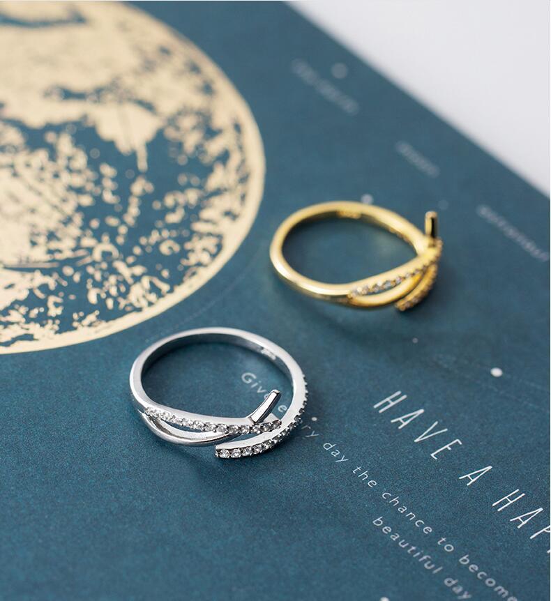 Ring Women's Korean-style Sweet Diamond Opening Letter X Cross Hollow Hand Jewelry