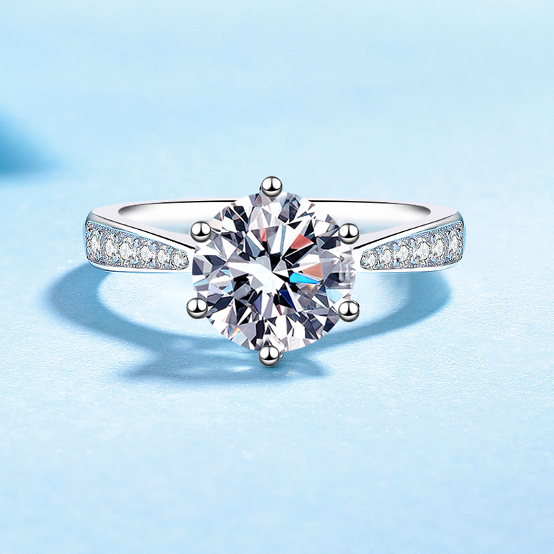 Dropshipping S925 Sterling Silver Ring for Women, Direct Supply from Manufacturer, Live Model, 1 Carat Moissanite Korean Version Six-Prong Micro-Inlaid Ring